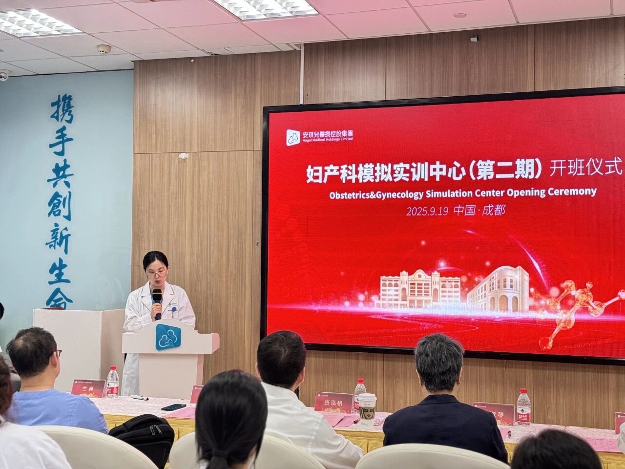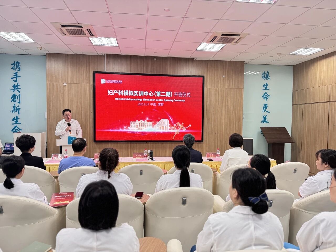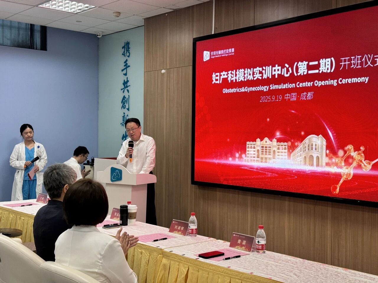本次开班仪式得到多方高度重视与大力支持,多位领导莅临现场为培训班 “保驾护航”。出席仪式的领导包括:安控集团董事、董事会秘书、首席财务官张泓帆先生,安控集团副总裁刘淑琴女士,成都安琪儿妇产医院业务副院长肖兵先生、行政副院长冯翎女士、运营副总经理兰典女士、运营副总经理黄蕖女士。